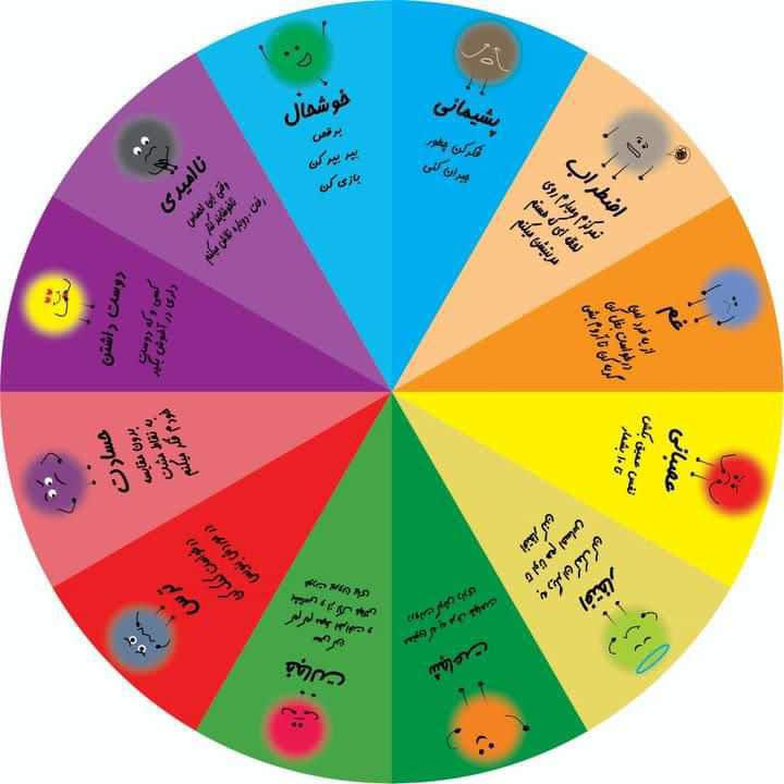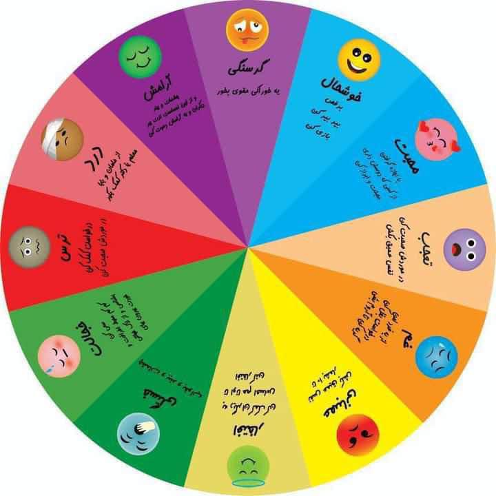 1. چرخش گردونه: کودک گردونه را میچرخاند تا یکی از احساسات (مانند خشم، غم یا شادی) مشخص شود.